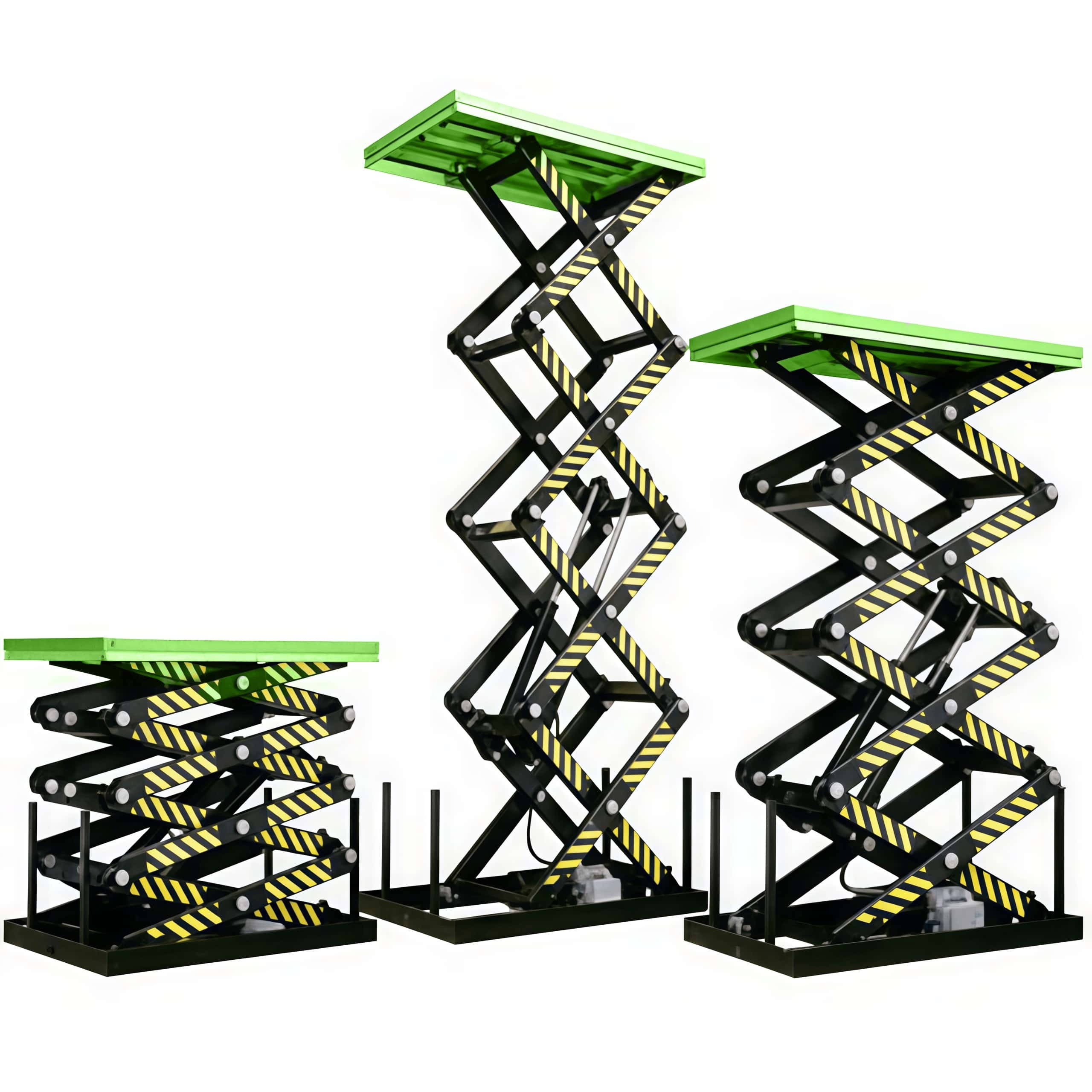 Estacionário Scissor elevadores não pode ser movido, somente pode levantar os bens nos lugar fixos, o tamanho da plataforma, capacidade de carga e a altura de levantamento pode ser personalizada baseou nas exigências de clientes diferentes. É amplamente utilizada na oficina, loja 4S carregar e descarregar bom com resistente.
